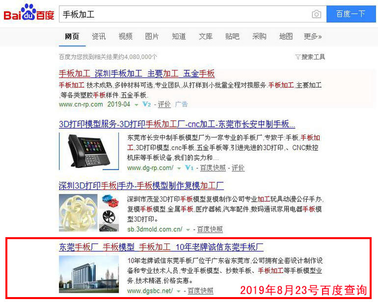 手板加工 : 2019-02-28上線    2019-03-05百度第20(原為第5頁(yè) 第7位)     2019-03-13百度第10名    2019-03-19百度第3名    2019-03-25百度第1名